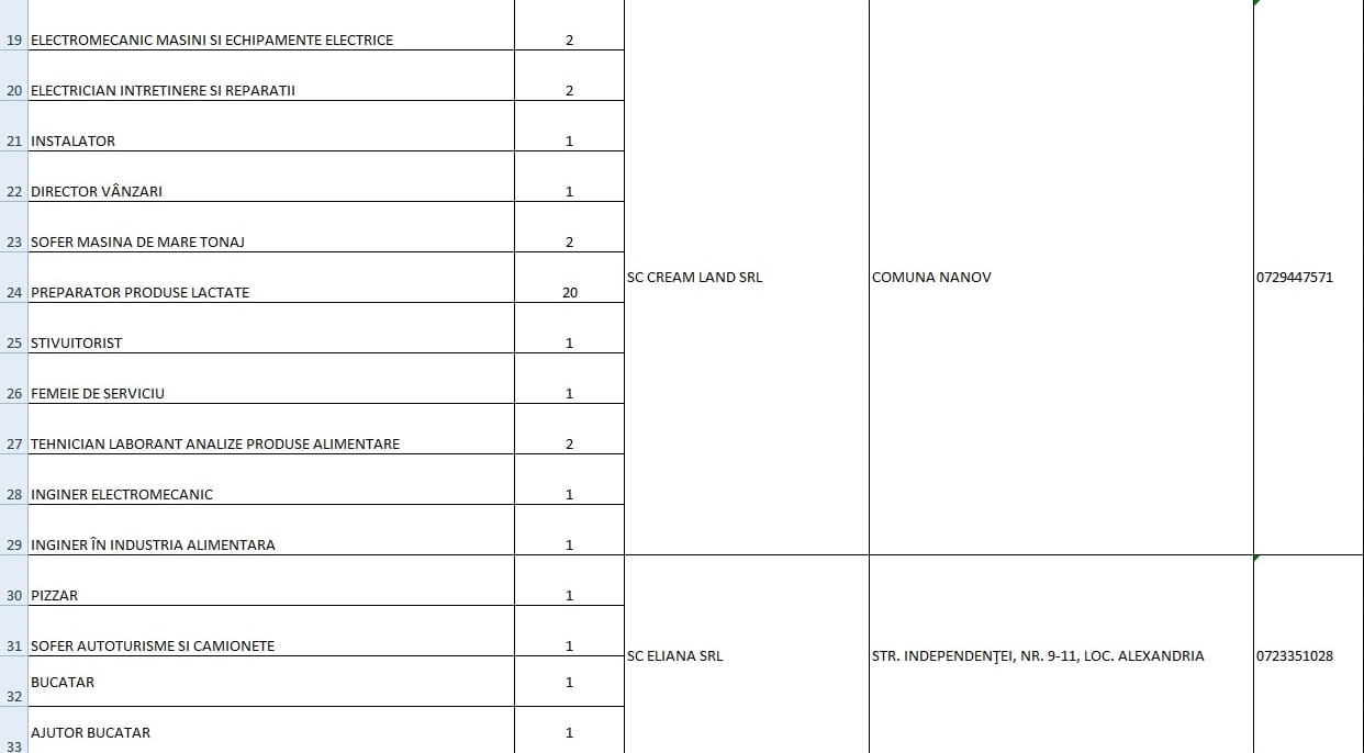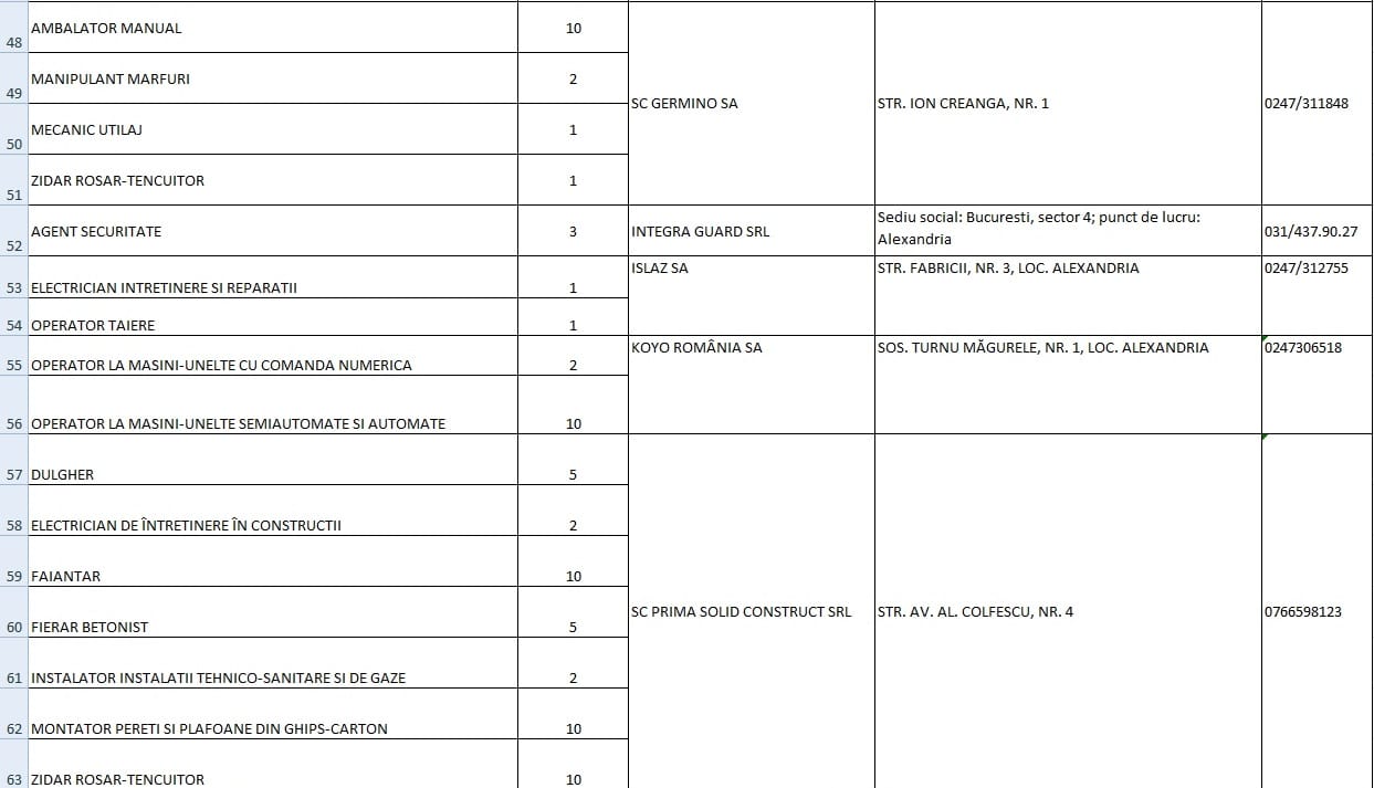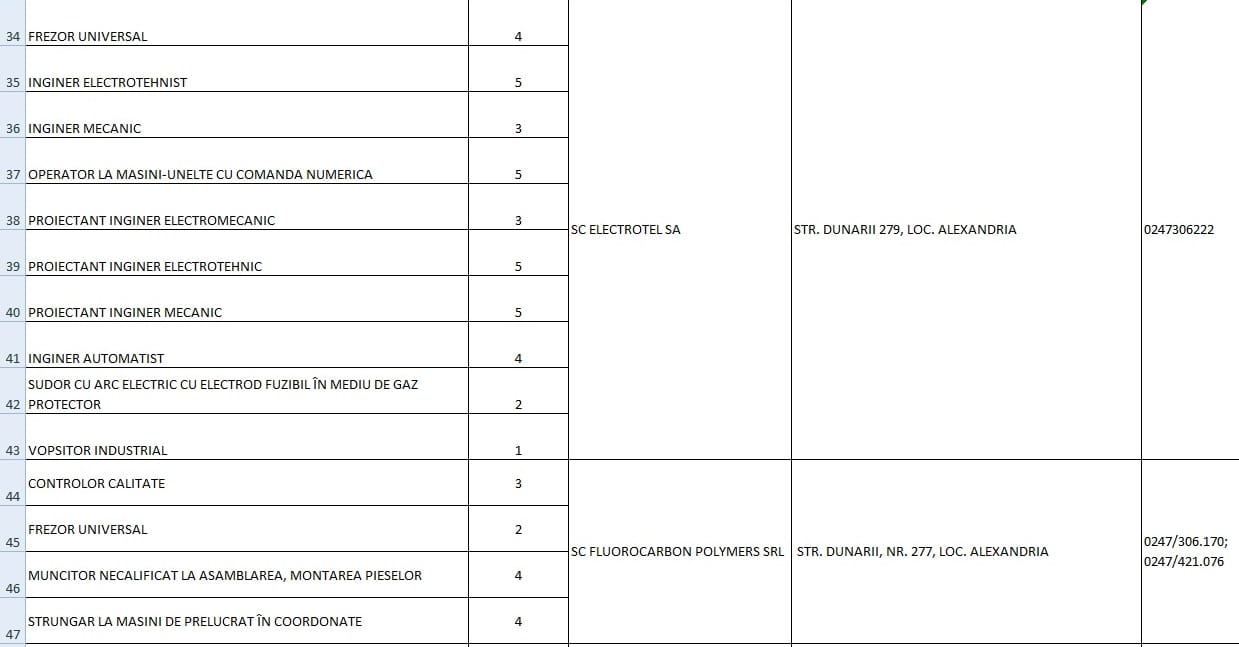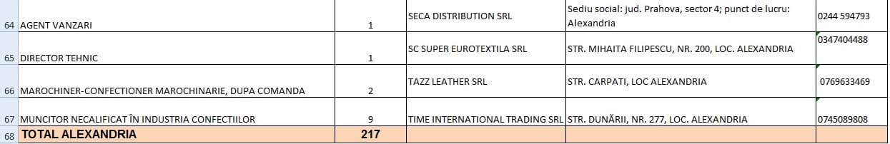 ATENȚIE! TR News nu-și asumă responsabilitatea pentru informațiile apărute în listă. Datele sunt oferite de AJOFM Teleorman.