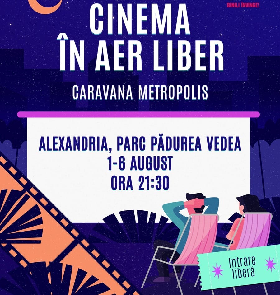În mijlocul verii, Alexandria se pregătește să trăiască o experiență cinematografică specială, grație evenimentului Caravana Metropolis – cinema în aer liber. Între 1 și 6 august, parcul Pădurea Vedea va fi transformat într-o sală de cinema sub cerul liber, unde publicul se va putea bucura în fiecare seară, de la ora 21:30, de un program ce include o selecție diversă de filme internaționale de succes, laureate și nominalizate la festivaluri prestigioase. Iubitorii de film și cei dornici să trăiască momente magice de neuitat sunt invitați să participe la acest eveniment deosebit.