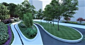 Vom avea și trei fântâni arteziene: fântână arteziană încastrată în paviment, fântână arteziană cu bazin de apă și fântână arteziană muzicală cu jocuri de apă și lumini.