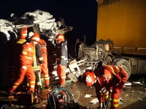 Grav accident rutier produs pe Drumul European 70, în localitatea Drãgãneşti- Vlaşca. Două TIR-uri s-a cionit frontal. Unul dintre şoferi...