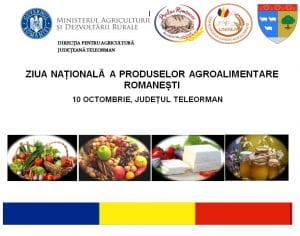 Ziua de 10 octombrie este dedicată promovării produselor agroalimentare româneşti şi producătorului român. Reprezentanții Direcţiei pentru Agricultură Judeţeană Teleorman, organizează în acest an, în perioada 8-10 octombrie, Ziua Naţională a Produselor Agroalimentare Româneşti.